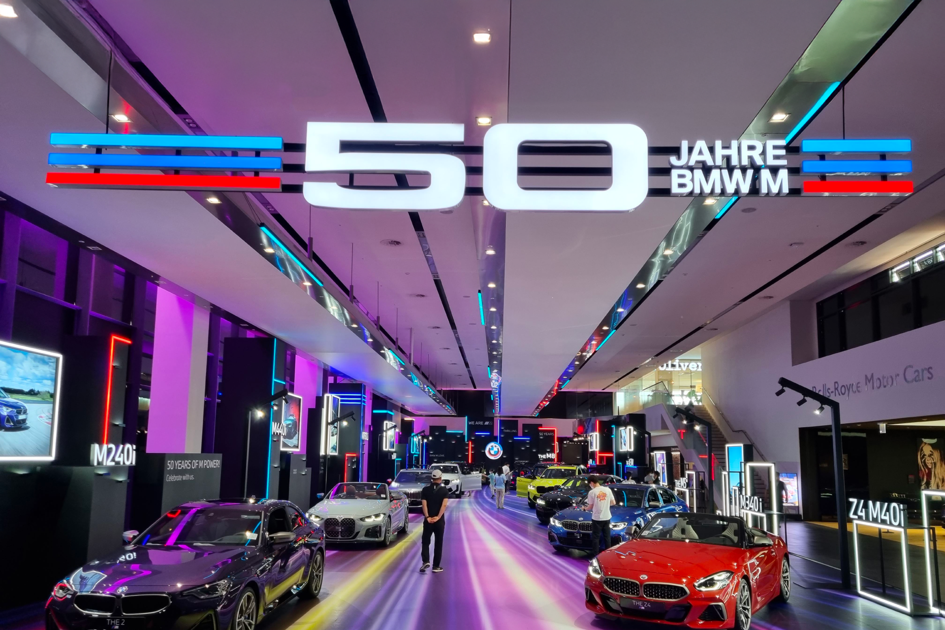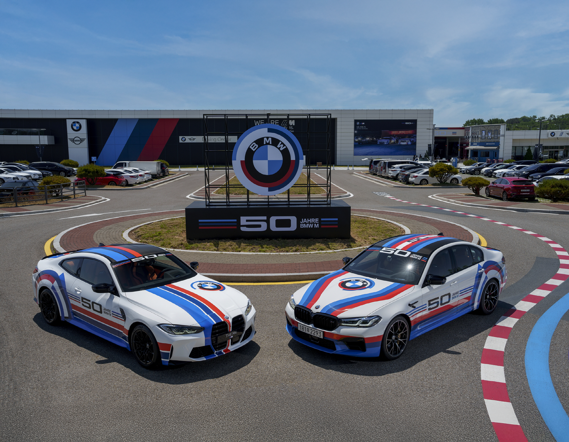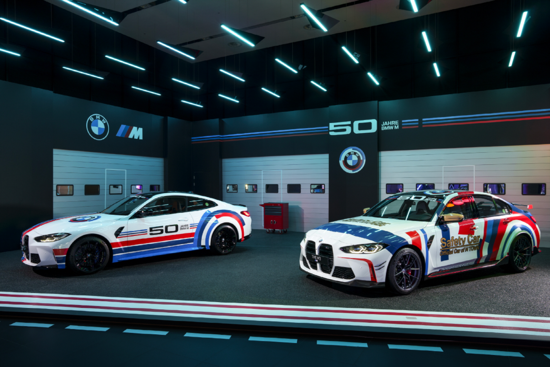 The BMW 50th Anniversary mapping graphic design aims to showcase the legacy of the BMW brand and the spirit of motorsport to fans worldwide, while conveying the brand's uniqueness and pride through limited edition vehicles. Centered around the iconic colors of the BMW M series (blue, red, and white) and its logo, the design incorporates stripe patterns on key parts of the vehicle, such as the hood, sides, and rear. This harmoniously blends tradition with a modern aesthetic, emphasizing the racing spirit and dynamic energy.