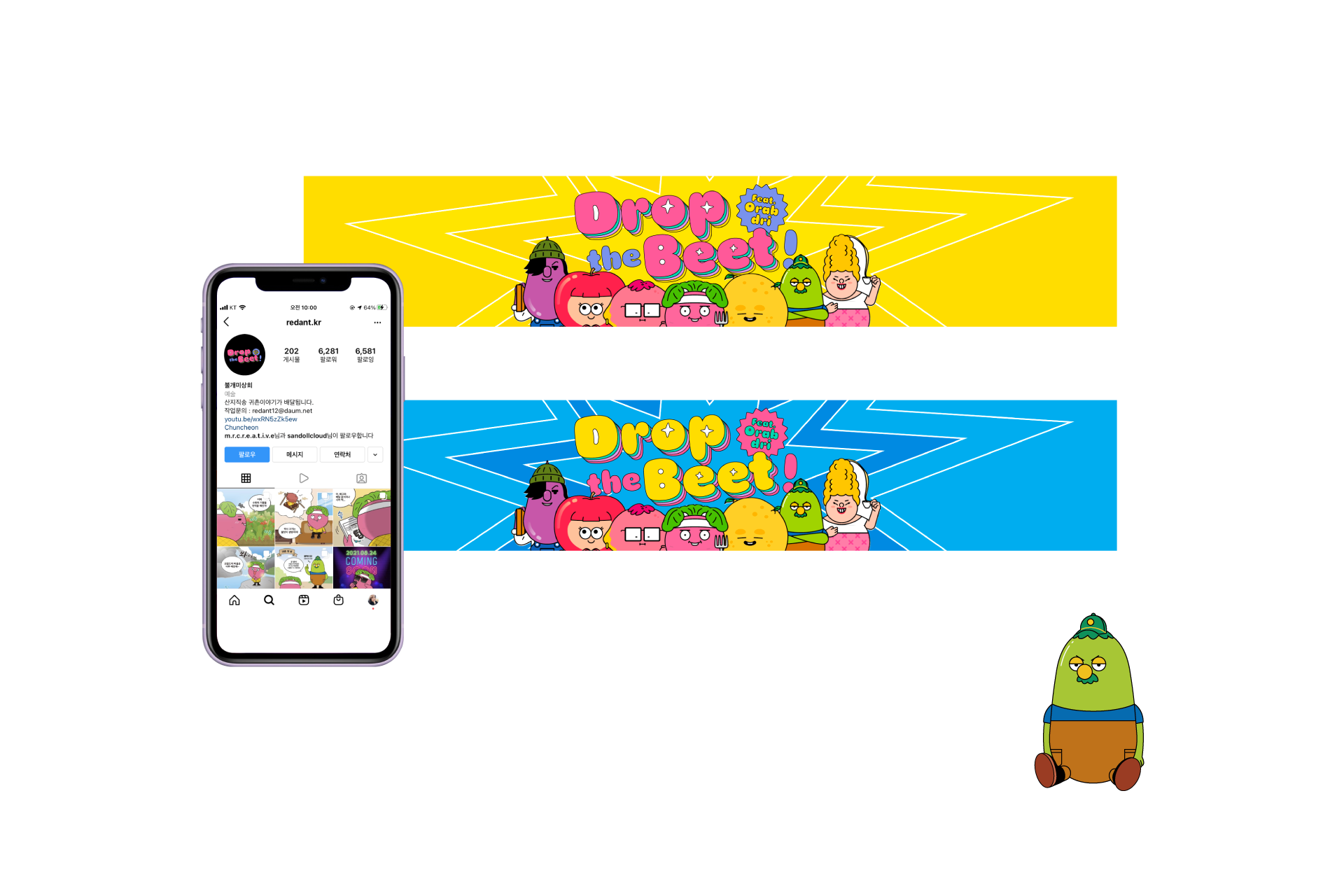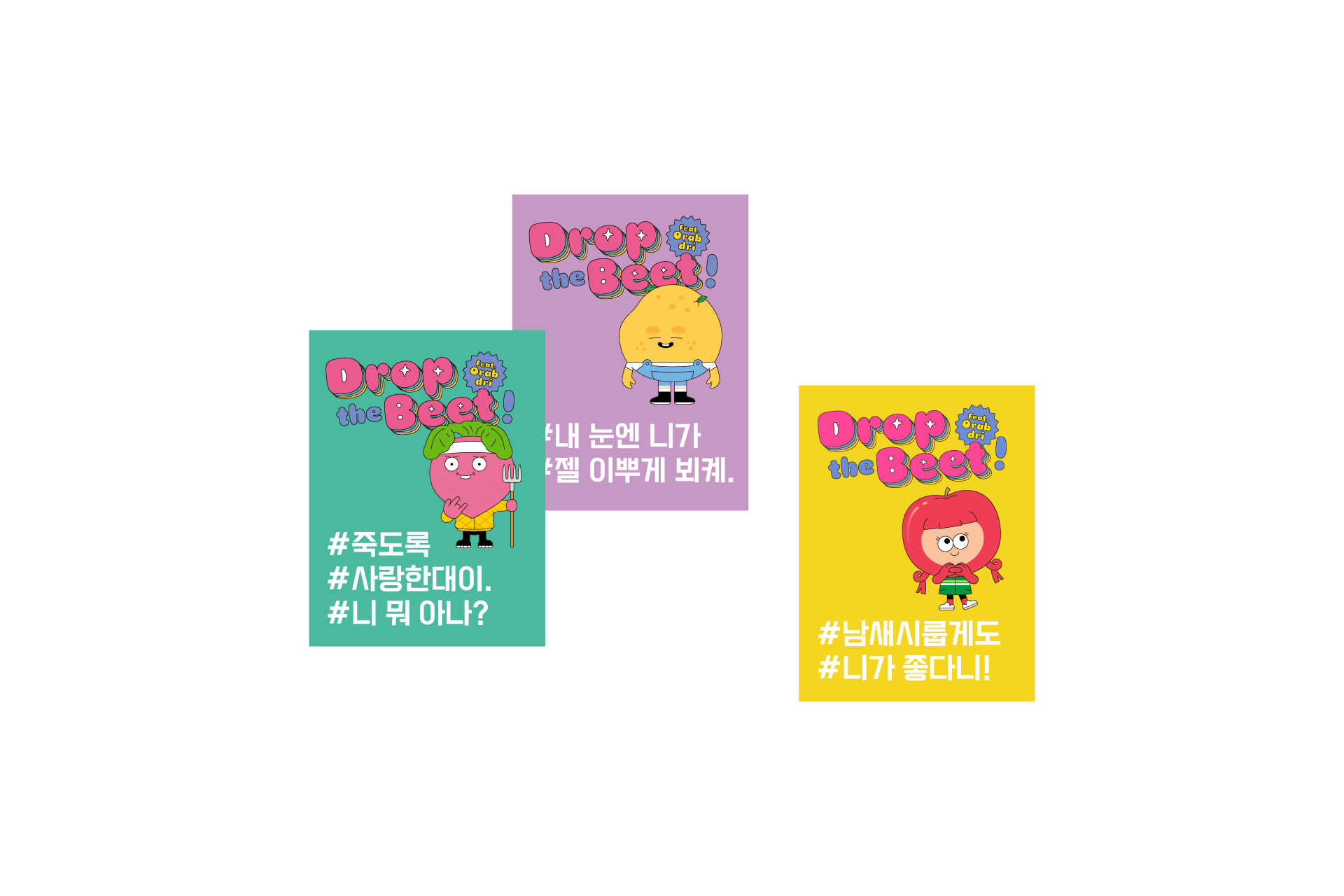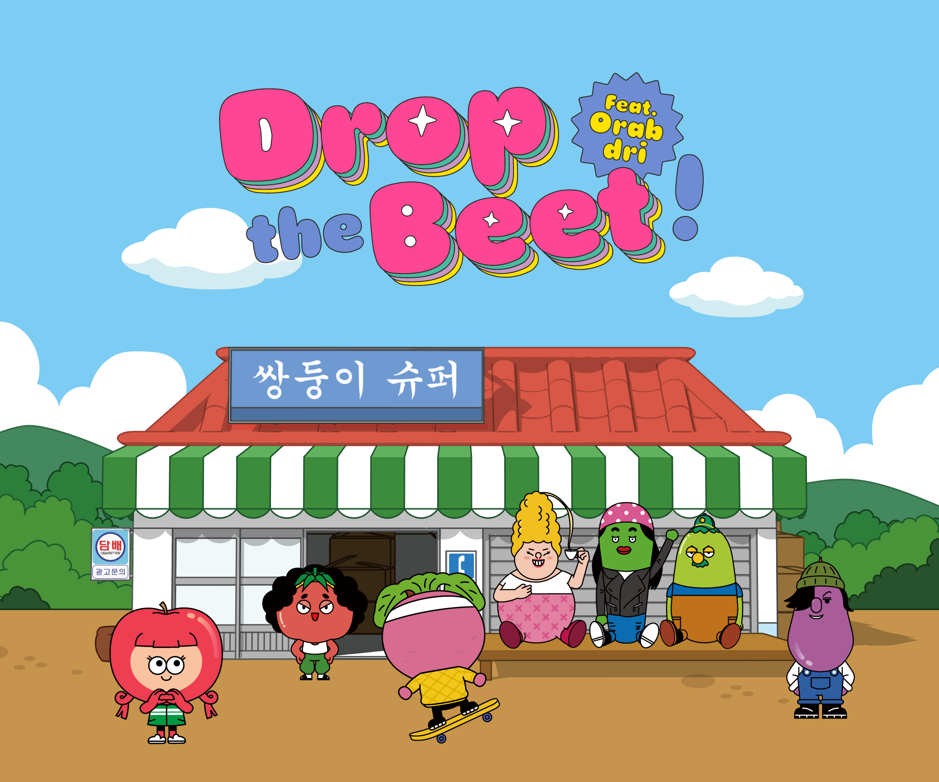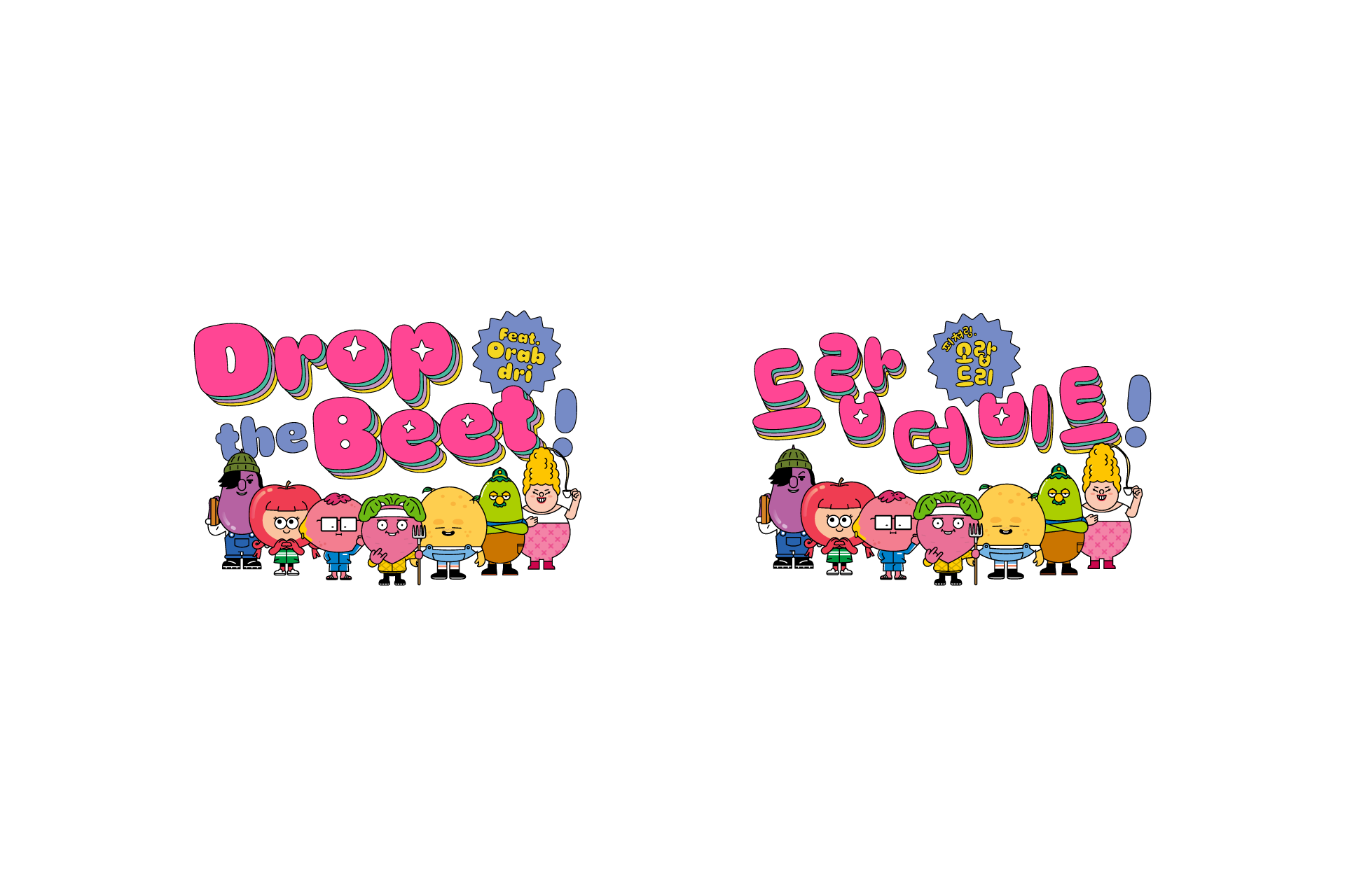 ‘Drop the Beet’ is an animated series about a rapper named ‘Beet’ who moves from Seoul to a rural area in Gangwon Province, where he has no connections and lives alone. This project involves developing the brand identity design for the animation. The logo was designed to reflect the dynamic sound of Beet's rap and the bouncing excitement of his new life challenge. I used vivid colours layered in the logo to symbolise the free-spirited and unique rural story. This design aims to convey a dynamic, lively, and fun image, transforming the perception of rural life from dull to exciting.